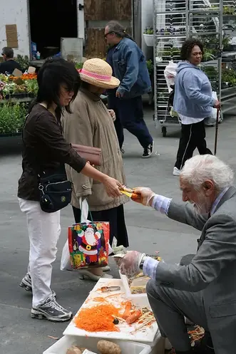 Joe Ades aka Carrot Man, Mr. Peeler an Englishman who learned his sales techniques in Manchester, England frequently sold his $5.00 Swiss Made peeler at Brooklyn Borough hall Plaza. His Daughter, Ruth Ades Laurent, took over the business after her father's death in 2009