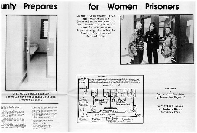 Valley Women'sVoice Pioneer Valley Amherst Massachusetts Kathryn Kirk photographs including Hestia Mural Project and Women and Life on Earth Conference which appeared in publication plus Kaymarion Raymond drawing of new women's prison Northampton,Ma